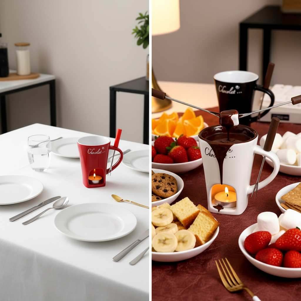Transform simple gatherings into extraordinary experiences with our elegant ceramic fondue set that melts chocolate, cheese, and hearts alike.
